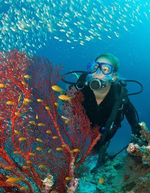 Im Norden, nahe Muscat, können Sie im Naturreservat der Daymaniyat Islands zwischen Juli und November die sanften und ungefährlichen Walhaie beim Schnorcheln, Tauchen oder Schwimmen ganz nah erleben.