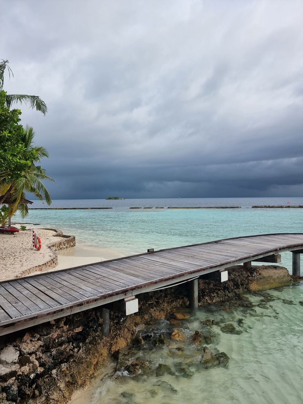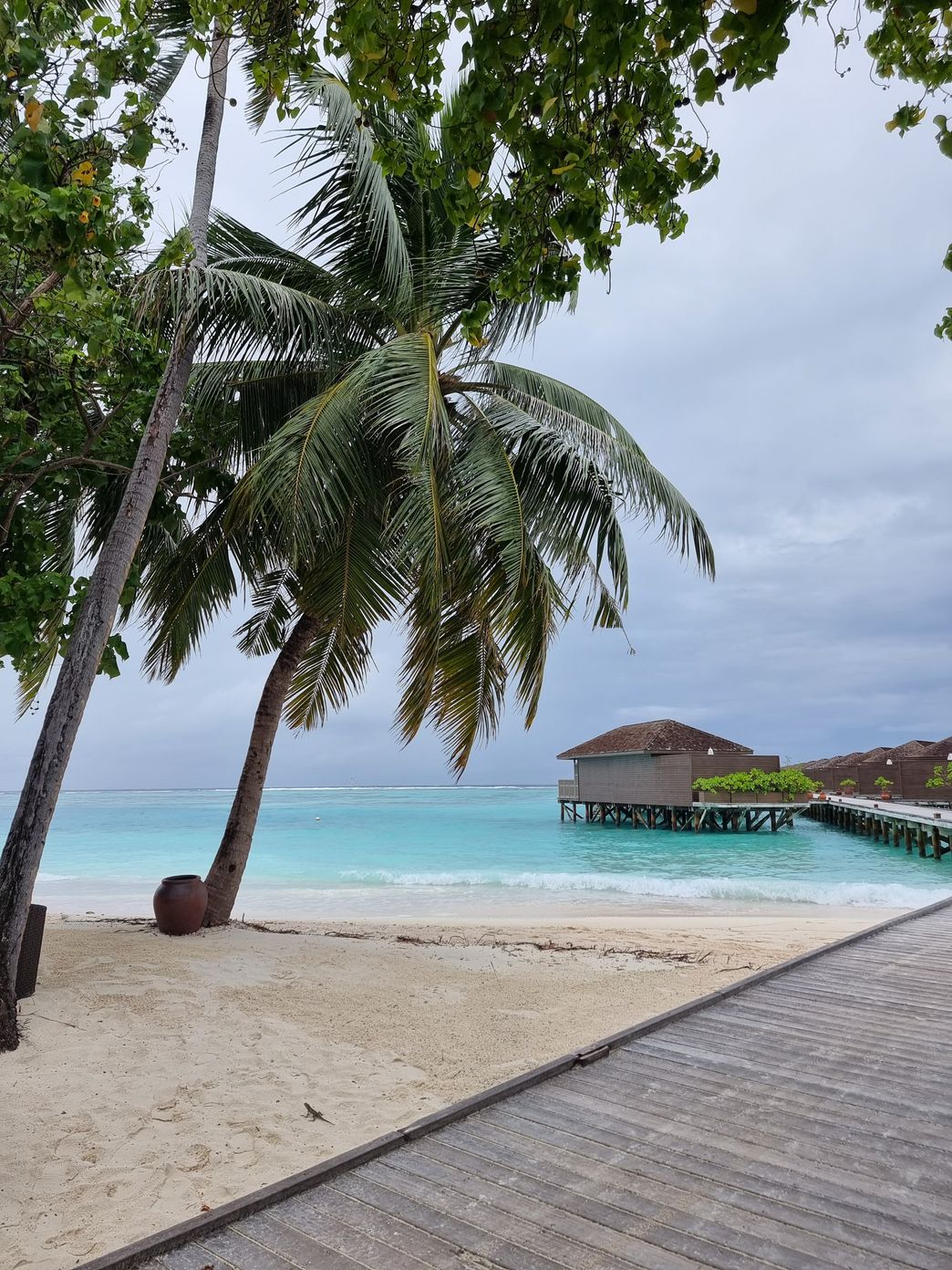 Begrüsst wurden wir auf Meeru von strömendem Regen und einem Regenschirm - mal ein etwas anderes Malediven-Erlebnis. Nach einem Welcome Drink, dem Check-in und dem Shuttle zu unseren Beach-Bungalows wurde uns – nach einem wohlverdienten Mittagessen - vom General Manager die Insel gezeigt.