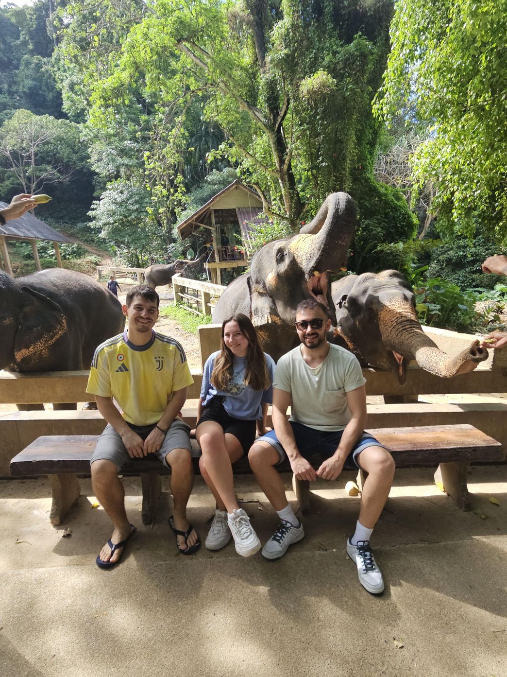 Der letzte Tag vor Abreise sollte einer der schönsten werden. Wir wurden abgeholt und zu einer Elefanten Auffangstation gebracht. Hier fanden einige der Dickhäuter Schutz oder gingen in Rente nach einem Leben voller Arbeit und touristischer Ausnutzung. So ist der Park auch sehr nachhaltig gestaltet und es wird respektvoll mit ihnen umgegangen. Konträr zu anderen Teilen Thailands ist das Reiten auf den Elefanten verboten. Am Anfang der Führung lernten wir viel neues über das Leben der Tiere und wie man sich um sie kümmert, bevor wir selbst Essen vorbereiten durften. Danach durften wir für Fotos posieren und die Elefanten mit Wasser abspritzen. Zum Schluss beobachteten wir sie noch bei einem kühlenden Bad im Pool. Den Nachmittag hatten wir zur freien Verfügung und verbrachten ihn am Strand.