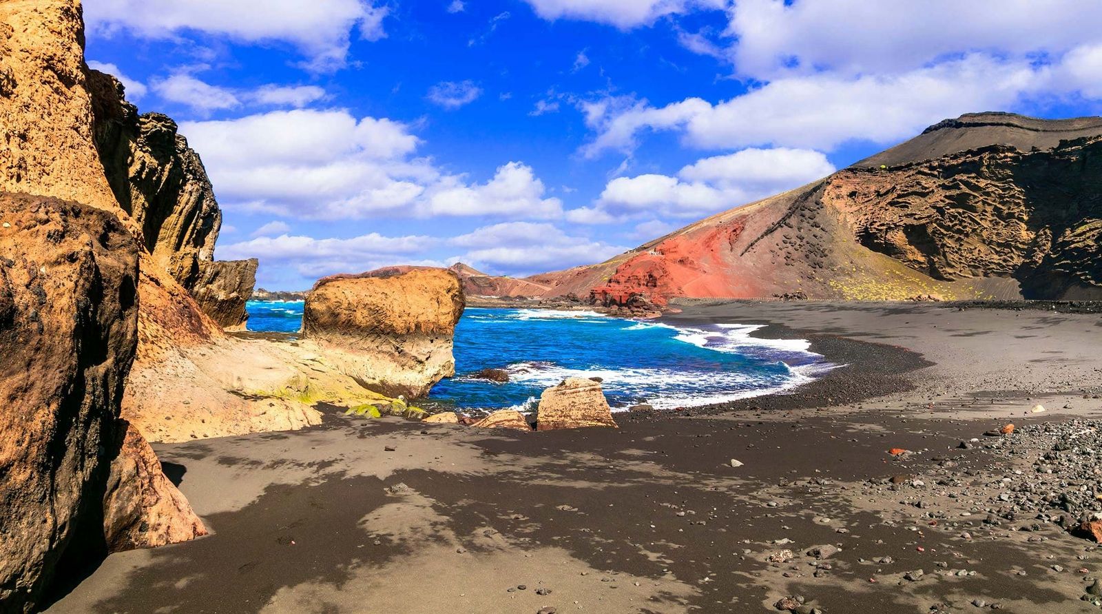 Auf Lanzarote hätte man die Mondlandung filmen können. Vulkanische Asche, schwarze Lava und silbern schimmernde Feuerberge beherrschen die Szenerie im Timanfaya Nationalpark. Ausserhalb malen Oasen und Gärten mit herrlichen Bougainvillen einige Farbtupfer in die karge Landschaft. Frei von Bausünden überragt, auf Spaniens Inselschönheit, kein Gebäude die Palmen und an der Küste stehen Sand, Kies und Fels für erholsame Ferien zur Auswahl.